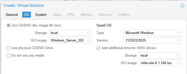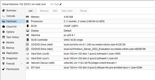 Let op: Installeer na de installatie van Windows Server 2022, de Guest-Tools om de netwerkkaart te zien!