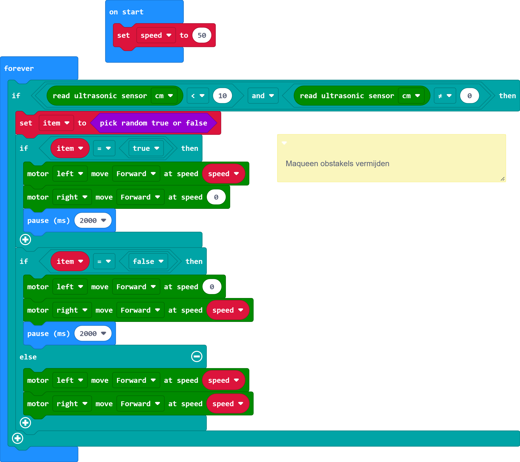 Laat de Maqueen v3.0 zelfstandig rijden en obstakels vermijden.