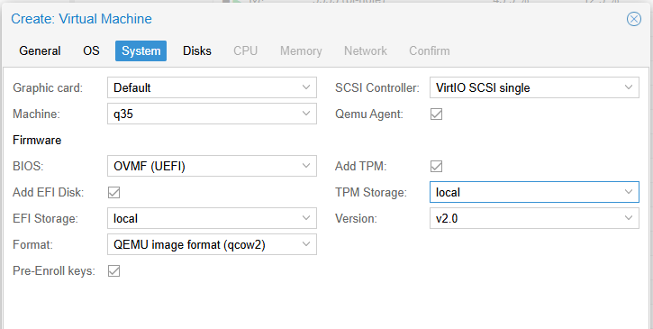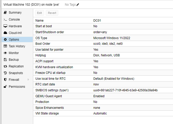 Zet het vinkje achter Qemu Agent: